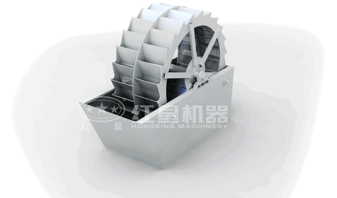輪斗式洗沙機主要是借助固體顆粒的比重不同,在液體中沉降的速度不同原理來實現(xiàn)沙子與雜質(zhì)分離的。沙子在進入洗槽后,在葉輪的帶動下翻滾并互相摩擦,除去覆蓋砂石表面的雜質(zhì),同時破壞包覆砂粒的水汽層,以利于脫水;同時加水,形成強大水流,及時將雜質(zhì)及比重小的異物帶走,并從溢出口洗槽排出,完成清洗作用。干凈的砂石由葉片帶走,最后砂石從旋轉的葉輪倒入出料槽,完成砂子的清洗工作。